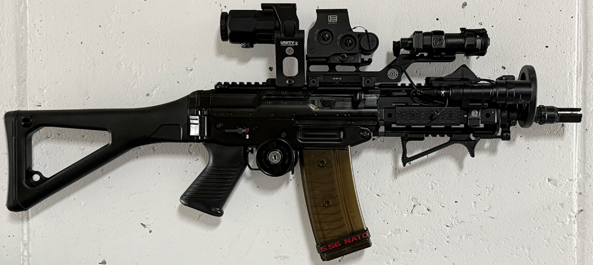 - Développement : Le SG 553 a été développé dans le but de créer une version plus compacte et légère du SG 550, tout en conservant ses caractéristiques de performance. Il a été conçu pour répondre aux besoins des forces spéciales et des unités de police qui nécessitaient une arme plus maniable.